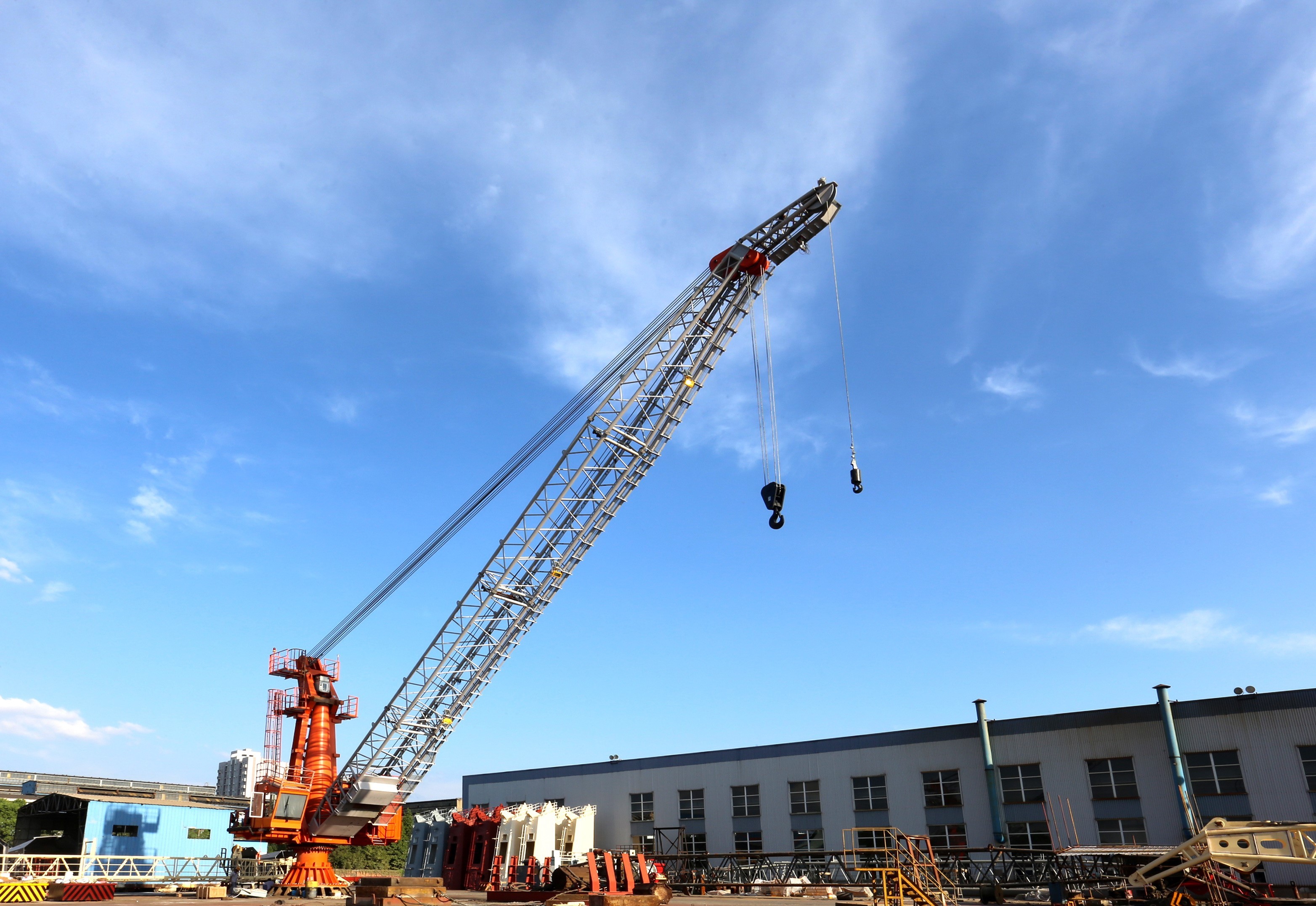 產(chǎn)品特點:鋼絲繩變幅,將軍柱結構,非回轉支承安裝,采用柴油機-液壓/電動-液壓驅動;