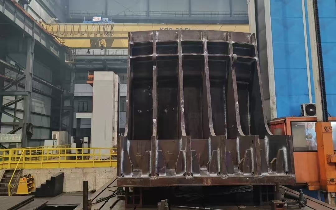 燕磯長江大橋并列式主索鞍結(jié)構(gòu)與焊接式索夾:湖北燕磯長江大橋主跨1860米,是世界最大跨度四主纜懸索橋,創(chuàng)新采用并列式主索鞍結(jié)構(gòu)。武漢船機(jī)參與索鞍索夾課題研究,針對并列式主索鞍滑動(dòng)副穩(wěn)定性控制要求高的特點(diǎn),與設(shè)計(jì)院合作首次創(chuàng)新采用了高承壓滑板材料,并優(yōu)化了滑動(dòng)副構(gòu)造。針對目前常規(guī)橋梁采用的鑄鋼件索夾壁厚大、重量大,鑄造易產(chǎn)生缺陷的難題,武漢船機(jī)與設(shè)計(jì)院等相關(guān)單位共同研究,創(chuàng)新完成高強(qiáng)度焊接式索夾研發(fā)工作,并開展拉力、疲勞載荷試驗(yàn)驗(yàn)證,實(shí)現(xiàn)了索鞍索夾高強(qiáng)度與輕量化,為懸索橋索鞍索夾結(jié)構(gòu)形式設(shè)計(jì)提供了新選擇。